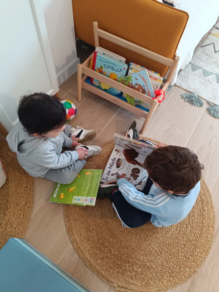 En algunos momentos del día o de la semana, creamos pequeños rituales en alemán (canciones, saludos, cuentos breves), siempre adaptados a la edad y sin forzar su comprensión inmediata. Lo importante es que estas experiencias sean naturales, cálidas y vinculadas a un contexto emocional y cultural positivo.